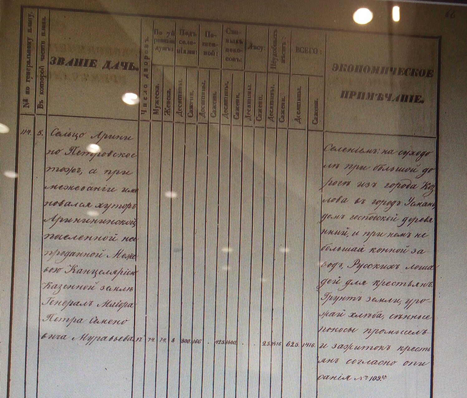 В 1778 году Ирина Леонтьевна Бибикова приобрела участок казённой земли из Ерковской степи рядом с дорогой из Козлова в Усмань и Воронеж. ![]() В 1780 году в новопоселённую деревню Аринино, расположенную как раз на купленном Ириной Бибиковой участке, были переведены одна семья дворовых людей и одна семья крестьян из деревни Сутормина, Кулешовка тож Епифанского уезда, а также одна семья крестьян из села Берёзово Воронежского уезда. По данным ревизии 1782 года в деревне Аринино проживало 22 человека. В 1795 году в деревне Аринино проживал 31 человек и она принадлежала сыну Ирины Леонтьевны и Фёдора Ивановича - подполковнику Александру Фёдоровичу Бибикову. Кроме того, по генеральному межеванию, проведенному в 1782 году, Ирине Бибиковой принадлежала земля в деревнях Дубовке и Александровке, находившихся в совместном владении нескольких помещиков. Одной из таких помещиц была Лукерья Яковлевна Осипова, супруга пример-майора Ивана Григорьевича Осипова. Именно ей принадлежала сама деревня Александровка. Она была заселена между 1762 и 1765 годам Александром Григорьевичем Кавериным, а после его смерти досталась Лукерье Яковлевне по разделу с пасынками. По ревизии 1782 года в деревне проживал 51 человек. На карте Козловского уезда Тамбовского наместничества 1787 года можно обнаружить обе деревни, обозначенные как Аринина и Александровка Осипова. Впоследствии А.Ф. Бибиков, вероятно, продал свои земли. В Экономических примечаниях Козловского уезда 1798 года записаны владельцы: деревня Александровка тогда была владением надворного советника Ивана Григорьевича Осипова; сельцо Аринино принадлежало генерал-майору Петру Семёновичу Муравьёву (1764-1836). По имени своего нового владельца сельцо получило и новое название - Петровское. ![]() Сельцо Аринино, Петровское тож располагалось на суходоле справа от большой дороге из города Козлова в город Усмань. В сельце был деревянный господский дом и небольшой конный завод русских лошадей для крестьян. Это не удивительно, ибо Пётр Семёнович был известным конозаводчиком и имел в селе Бородино Тульской губернии завод «кровных» скаковых лошадей. Население составляло 148 человек в 17 дворах. ![]() Деревня Александровка располагалась слева от большой дороги из Козлова в Усмань, на берегу отвершка безымянного на левой стороне, а оврага безымянного с прудом по обе стороны. Неподалёку от Александровки протекала речка Дубовка, на правом берегу которой находились деревенские поля. В Александровке было тогда 10 дворов, в которых проживало 108 жителей. К середине XIX века сельцо и деревня, находившееся по разные стороны большой дороги, сливаются в одно селение, в разных источниках именовавшееся по разному. Так, в топографическом межевом атласе Тамбовской губернии, составленного в 1860 году чинами Межевого корпуса под руководством Генерального штаба генерал-лейтенанта А.И. Менде, обозначено сельцо Александровка, в котором было 32 двора. В то же время в Списке населенных мест Тамбовской губернии, составленном по сведениям 1862 года, под номером 1511 значится сельцо Петровское, расположенное на транспортном тракте из города Козлова в город Усмань, при прудах. Население Петровского тогда составляло 400 человек, проживавших в 48 дворах. А на схематической карте Козловского уезда, изданной Тамбовской губернской Земской управой в 1881 году, сельцо назы