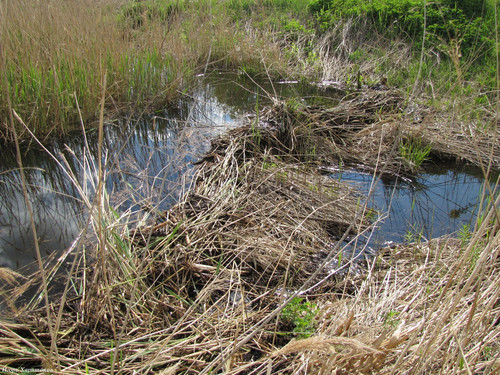 Фото бобровой плотины у моста. Фото сделано 19.05.2017 в Новой Васильевке.